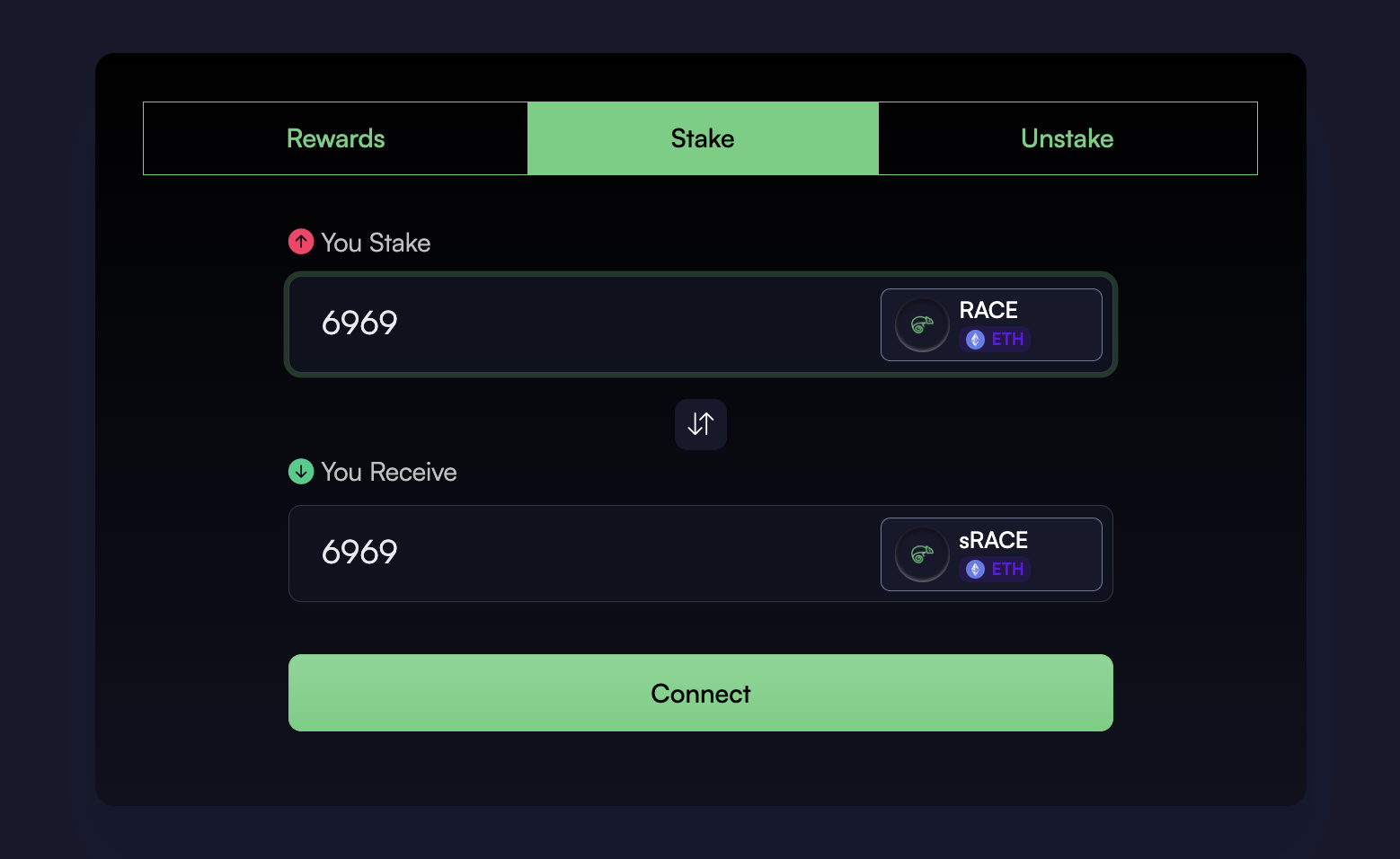 You can stake your $RACE tokens to automatically accrue a proportional share of all platform fees.
